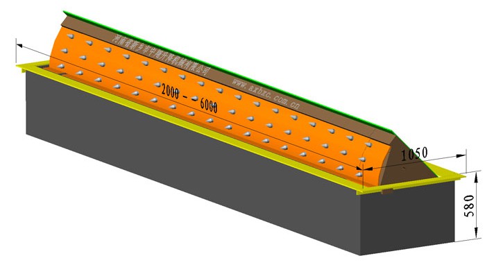 11、機體規(guī)格:機箱長2000mm-6000mm×寬1050mm×高580mm,